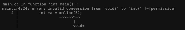 很显然,如果你不明确强制转换,那么 C++ 无法将 void* 这个空指针转化为整数指针。