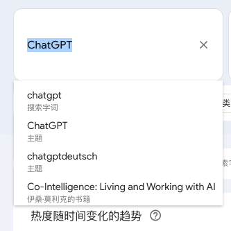 注意,在搜索框里,我们可以选择是具体的字词还是主题。如果是主题的话,可能包含很多字词,上面给出是 ChatGPT vs Gemini 就是错误的,我们应该两者都选择字词(或主题)。