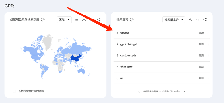 左边是用户搜索的主题以及其他关联主题,这个,可让我们认为用户更偏向于哪类群体,比如 ChatGPT 生成 logo....