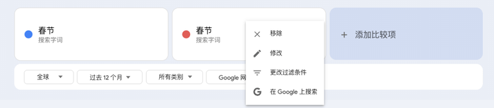 后面还能调整用户是 电商、新闻、餐饮.... 以及是网页搜索量、图片搜索量、购物搜索量还是youtube 搜索量。
