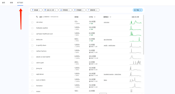 注意,这些线段,有绿,有灰。绿色表示还在活跃被搜索,灰色则已经过时。
