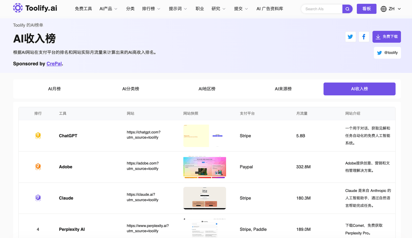 当然,这些平台上,霸榜的还是一些元老级的普通功能月付费订阅网站,但肉眼可见里面混入的 AI 产品站还是不少的。2025 年是越来越多。