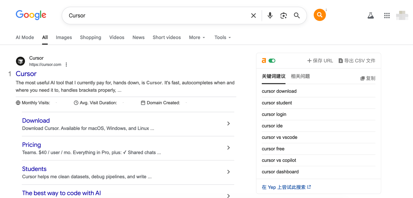 是的,看上图,谷歌 已经 把这个词 「一对一」 绑定给 Cursor 这个 AI 产品了!正儿八经的品牌词。