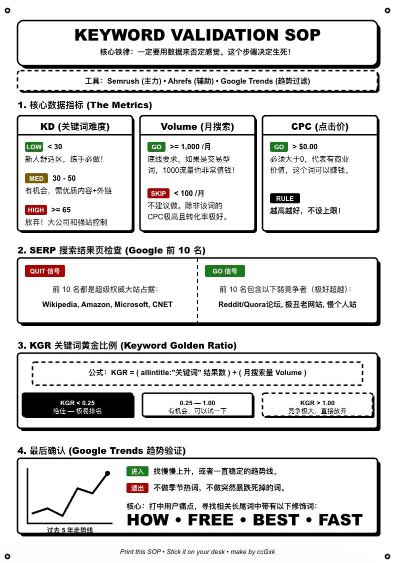 我之前在本平台发过各种 SOP 和找词技巧,当然,我简单生成一张图,重要指标如此图所示,大家可以根据线索找我写的原文看看。