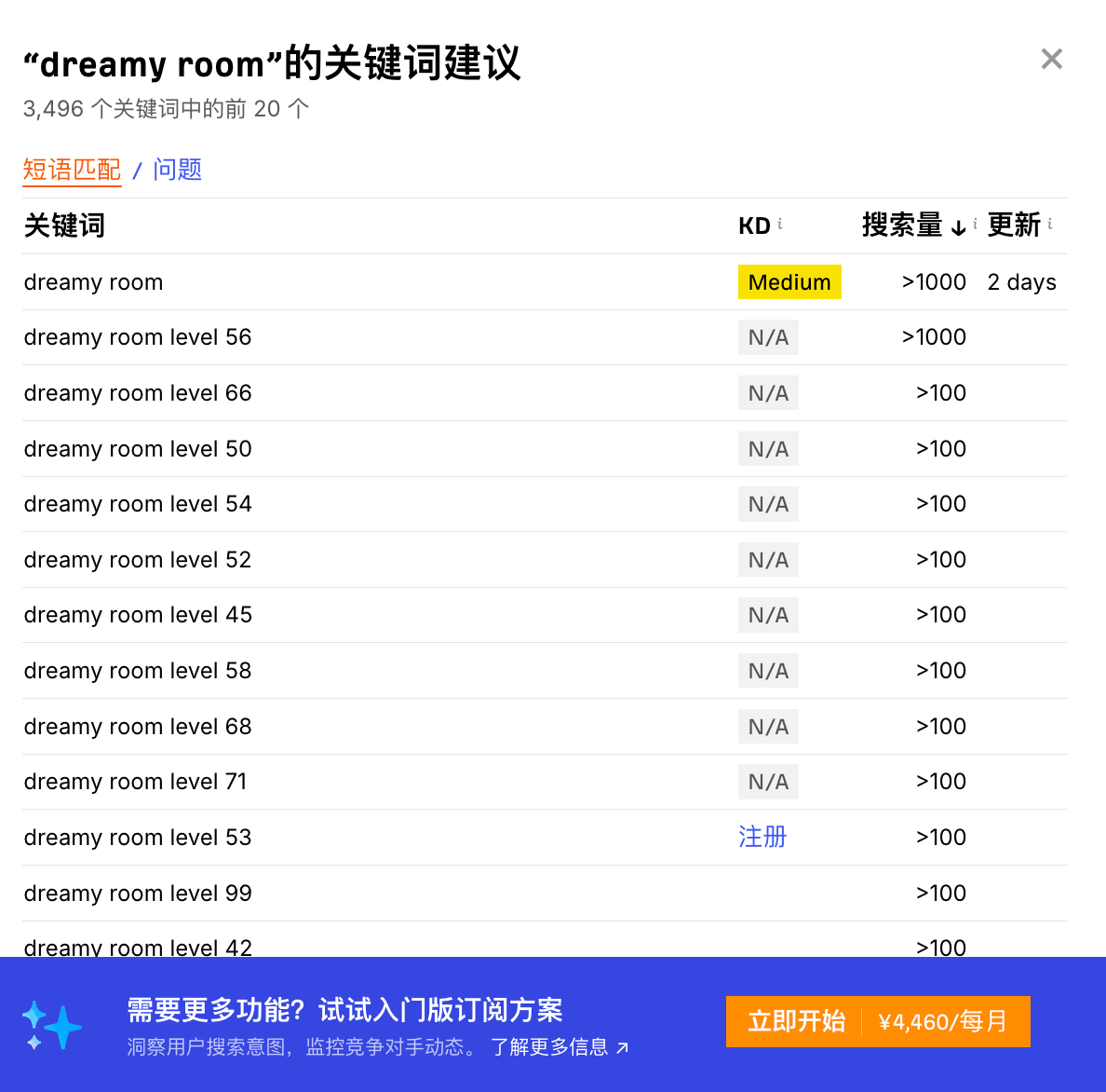 所以,独立站就是练习流量,前期不建议直接上手搞 SaaS ,你没 SEO 常识和经验不行。前期练手,大家就可以捡几个 流量高、竞争低 的游戏词。挂上谷歌广告,也算有点实在的正反馈,一般 3 个月内就能达到谷歌 100 美元的提现门槛。