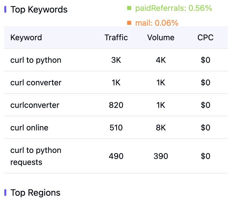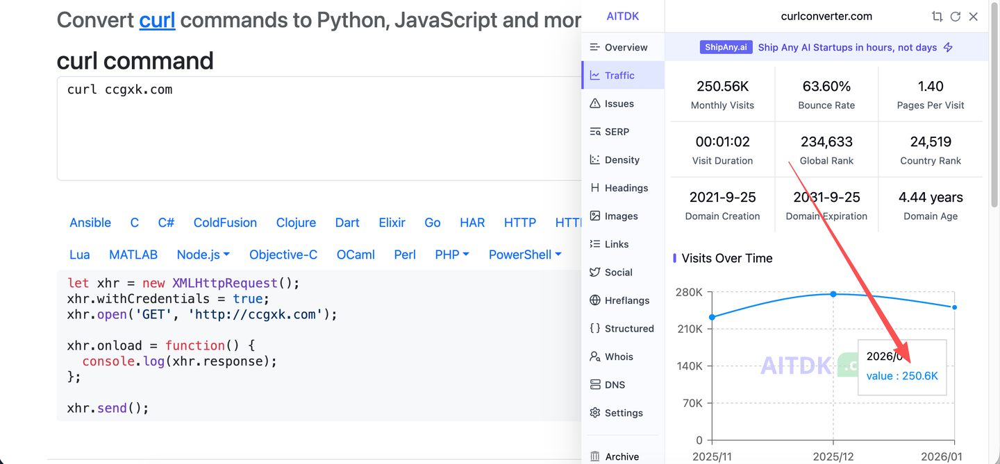 当然,流量高的秘诀还有,域名容易记,curl convert ,有和 AI 敲这个玩意,解释半天的功夫,网站早干完活儿了。