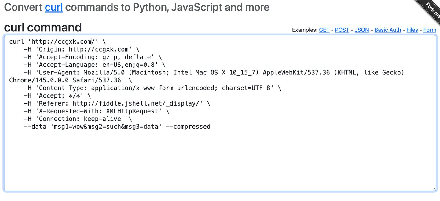也并非不实用,如果条件不允许使用 postman 等工具,只有终端,这个网站还提供了略复杂的 GET POST 等写法,确实还比较实用: