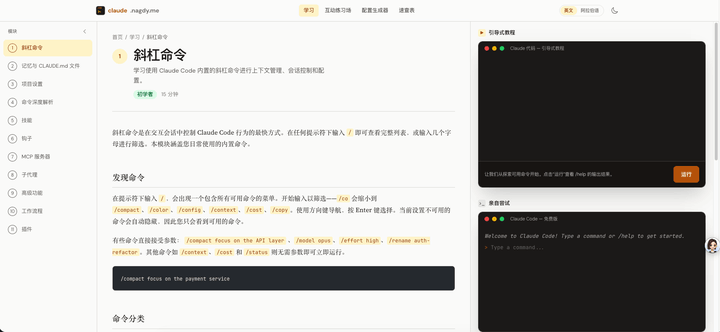 这个学习 claude code 的交互教程网站非常棒!