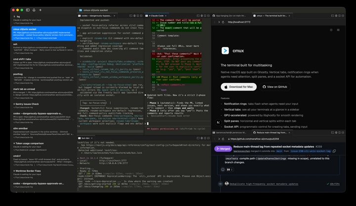 一个叫 Cmux ,专为同时跑多个 coding agent 而生,灵活分屏 。