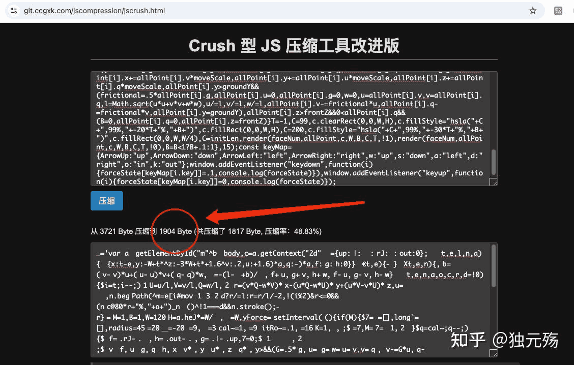 把 JS 用 crash 压缩后,体积只有 1.9kb 大小。